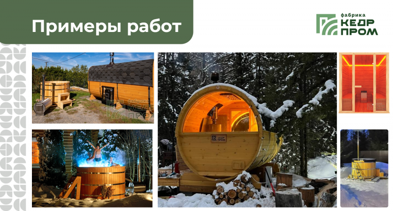 Выпускаем более 500 наименований продукции. За 20 лет изготовили 25000: кедровых бань-бочек, фитобочек, купелей, финских и ик саун, фурако. Многие изделия уникальны, разработаны нашими технологами и имеют Патент.
