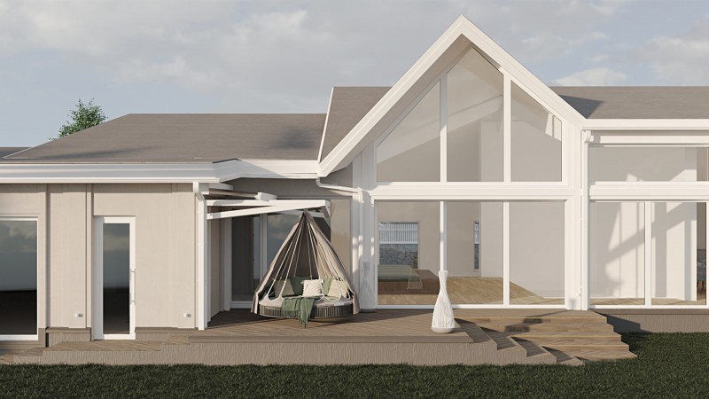 Отдых от городской жизни и его ритма - философия проекта. Этот дом — идеальное место для отдыха от города, тихое убежище, где вы можете расслабиться, насладиться спокойствием природы, провести время с близкими и выразить свои мысли.