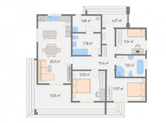 • Общая площадь 128 м2