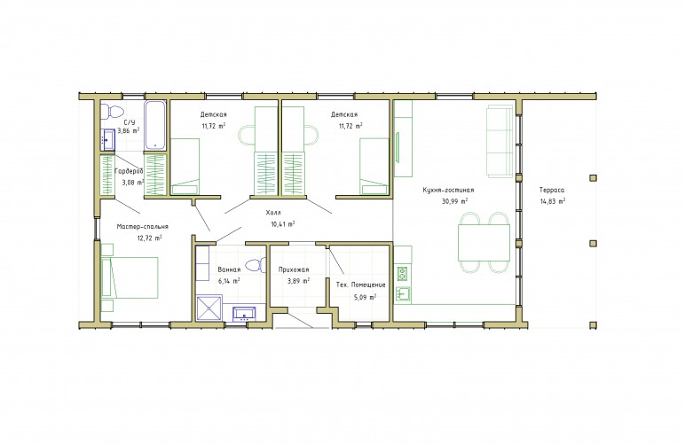 Общая площадь дома 118м2