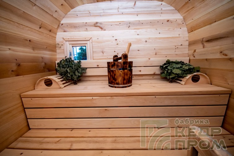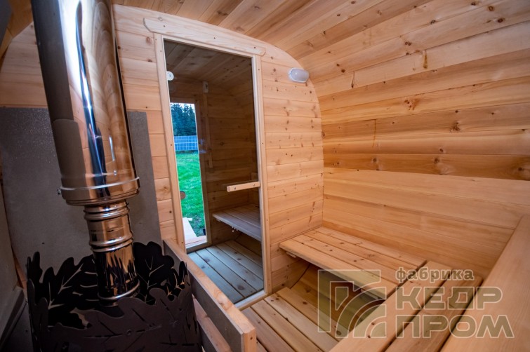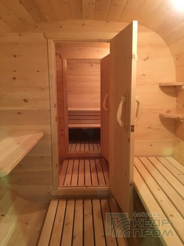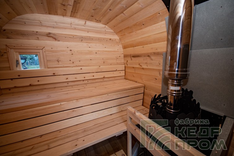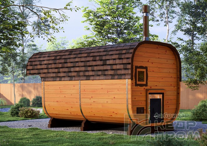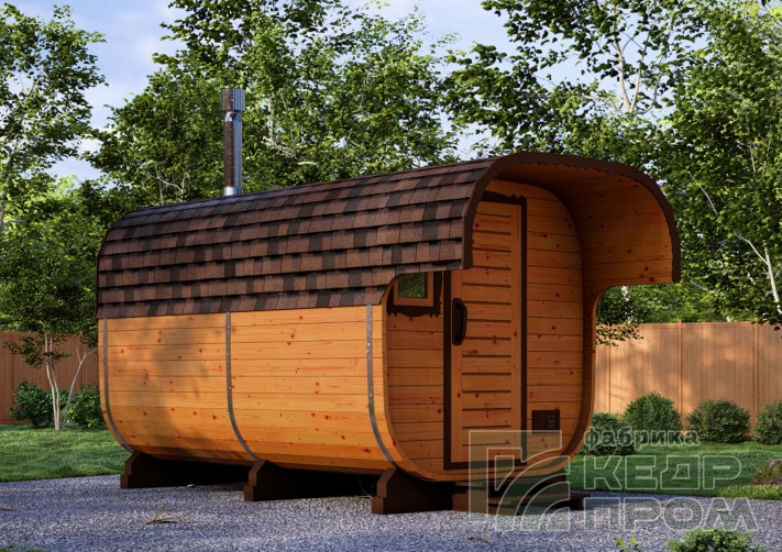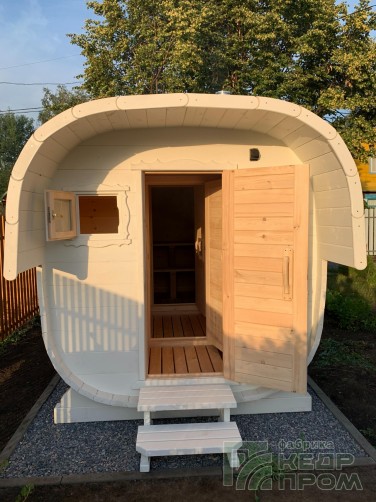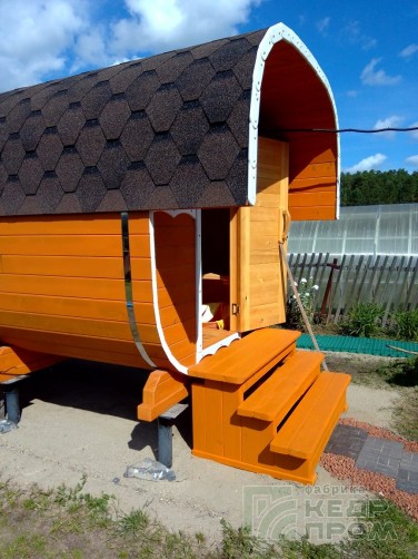 Баня-бочка из кедра квадратная 4,5м с козырьком №270