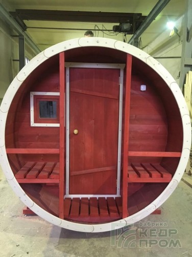Баня бочка длиной 4,5 метра, в конструкции которой предусмотрена вместительная раздевалка и крыльцо со скамейками - идеальный вариант домашней баньки для тех, кто любит не только на славу попариться, но и поговорить по душам в компании близких людей.