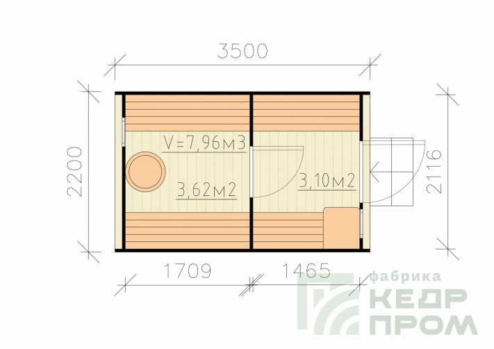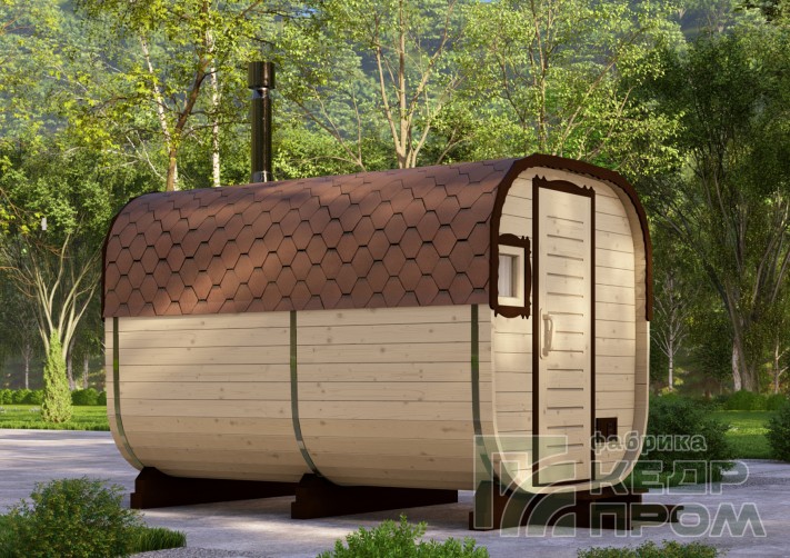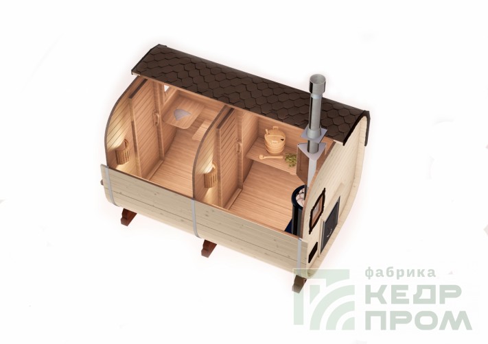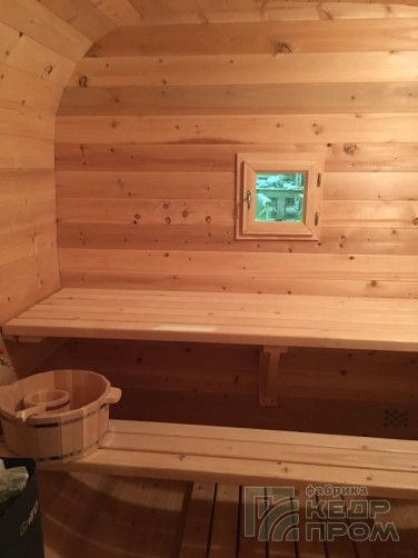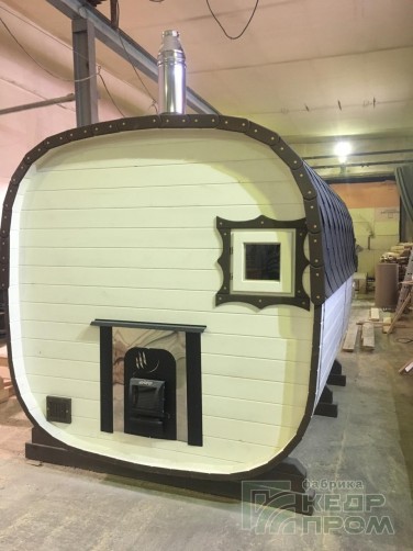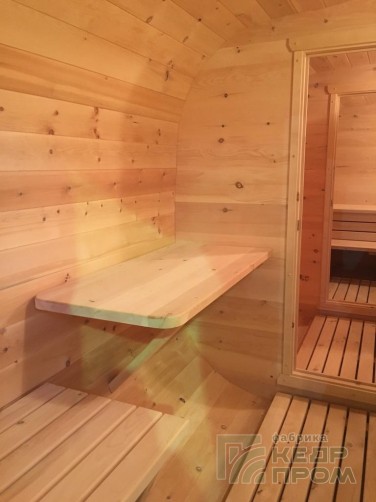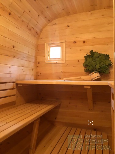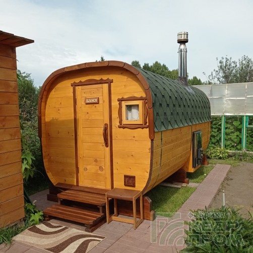 Баня-бочка квадратной формы длиной 3,5 метра из отборного кедра. Парилка и комната отдыха, это все что необходимо для принятия парной процедуры в русской бане. Баня укомплектована печью с камнями и баком на 50 литров для горячей воды, а также имеются: полки для парения, освещение, полочки, вешалка, окна, трапики и сливы.