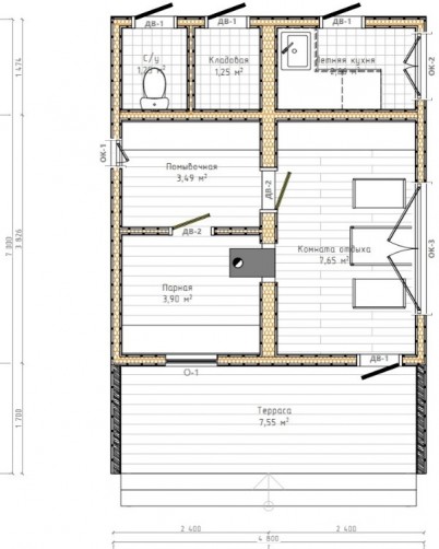 • Общая площадь 34 м2