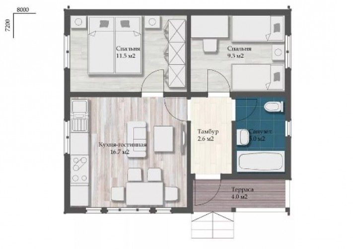 • Общая площадь 58 м2