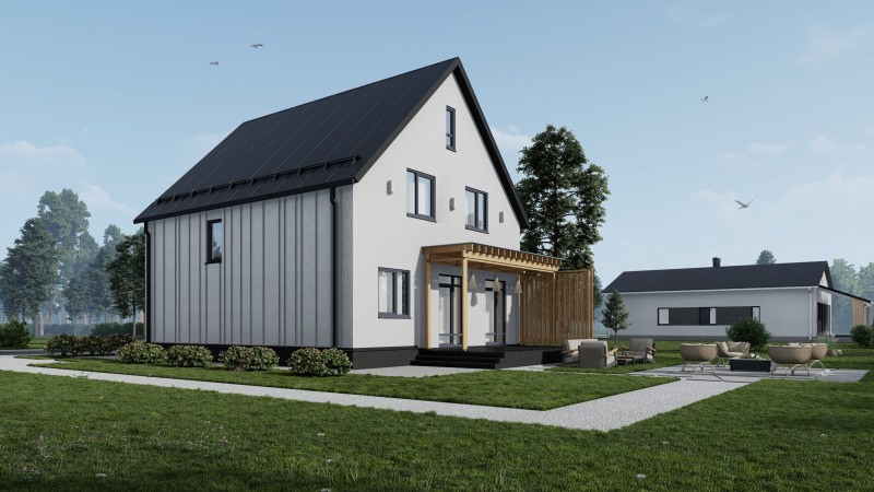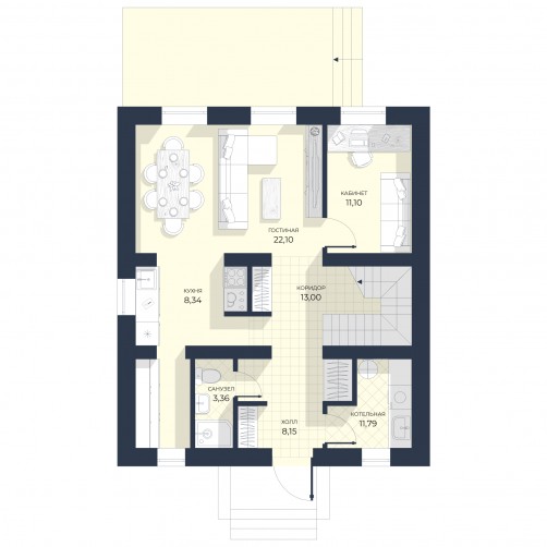 Идеальный дом с четырьмя комнатами. Высокие потолки и большие окна делают пространство светлым и воздушным!