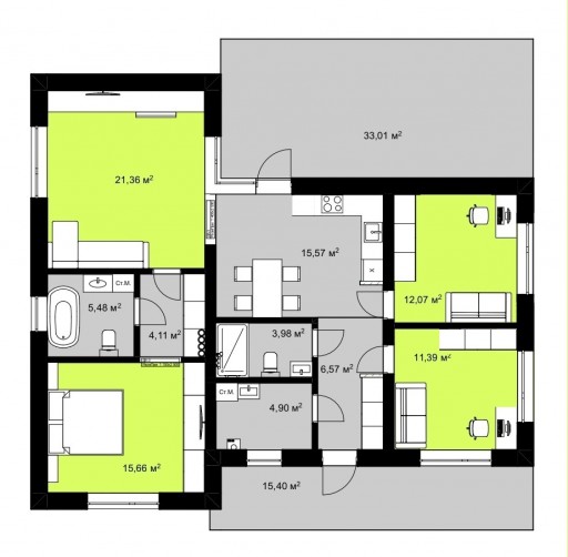 Дом: 101 кв.м. (полезная площадь, без террасы и крыльца):