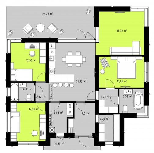 Дом: 116,26 кв.м (полезная площадь, без террасы и крыльца):