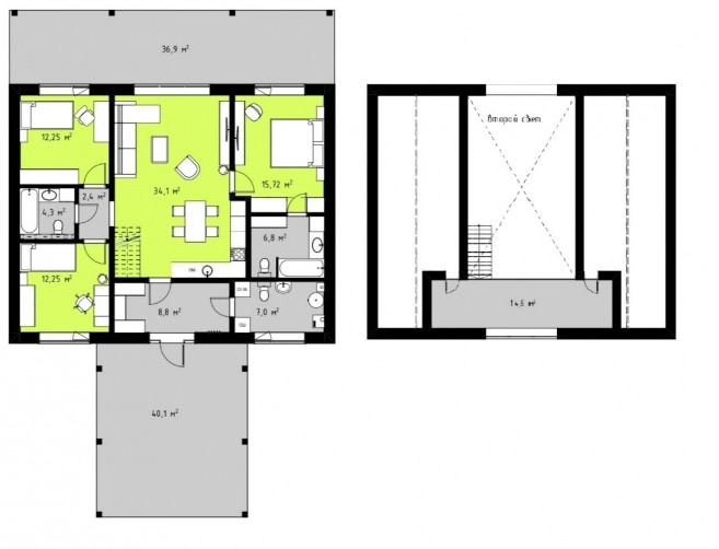 Дом: 118,1 кв.м (полезная площадь, без террасы и крыльца):