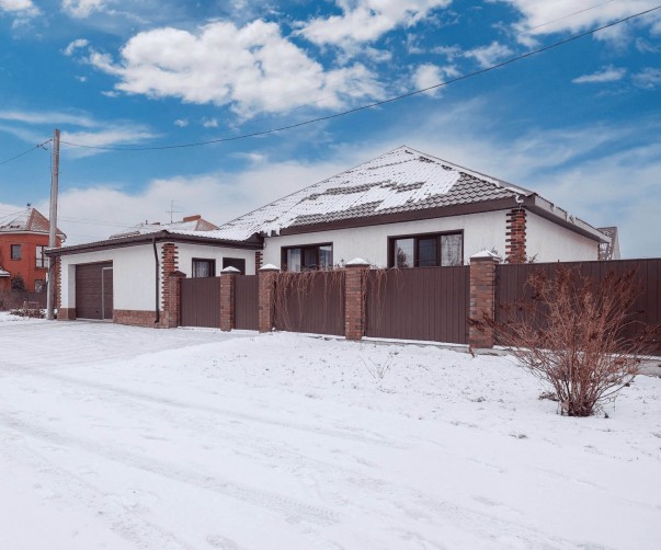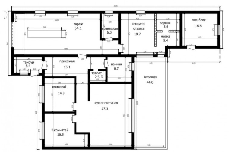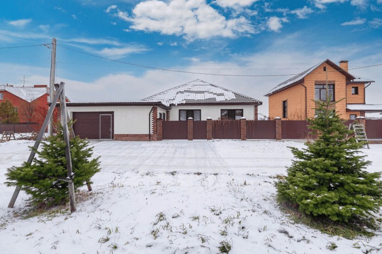 Многофункциональный одноэтажный дом с гаражом на 1 машиноместо, гардеробом, парной, мойкой, раздельным СУ и хозяйственным блоком.