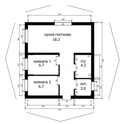 • Общая площадь 55 м2