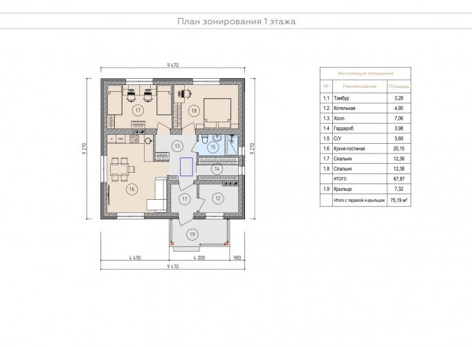 • Общая площадь 68 м2