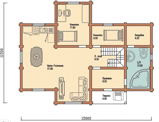 Домокомплект может быть изготовлен из бруса или бревна любого сечения.