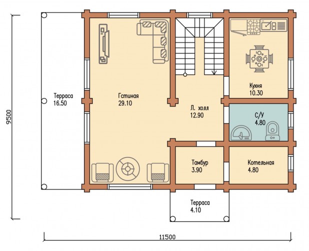 Домокомплект может быть изготовлен из бруса или бревна любого сечения.