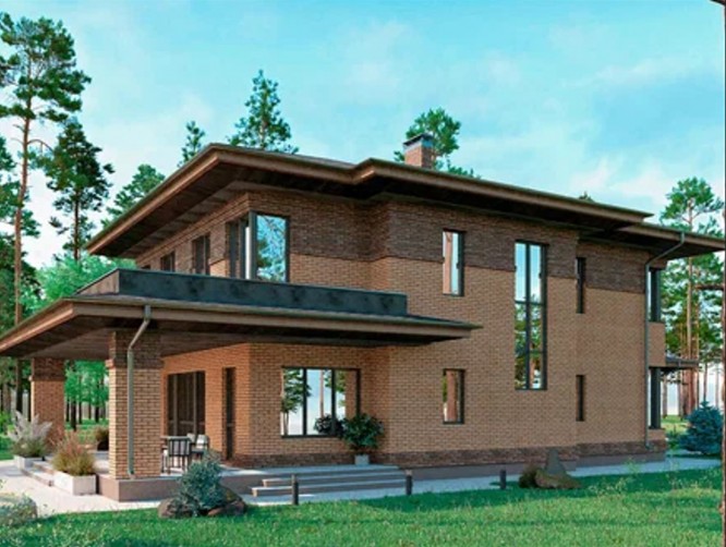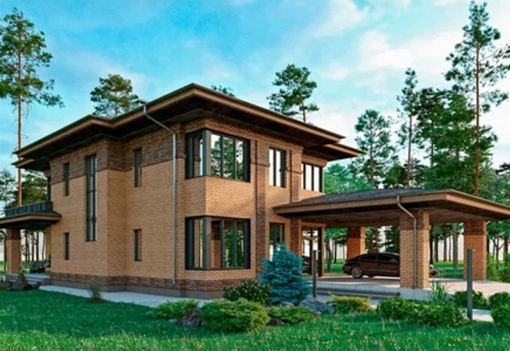 Двухэтажный жилой дом из кирпича с навесом на две машины и террасой. В данном проекте предлагается планировочное решение с учетом требований жизнедеятельности заказчика.