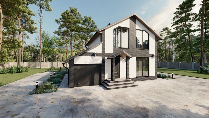 Продуманная планировка двух этажей обеспечивает максимальную эффективность использования пространства: на первом этаже расположена светлая кухня-гостиная — сердце дома для теплых семейных вечеров и встреч с друзьями, а также удобный гараж для вашего автомобиля. Три спальни на втором этаже создают уютное личное пространство для каждого члена семьи.