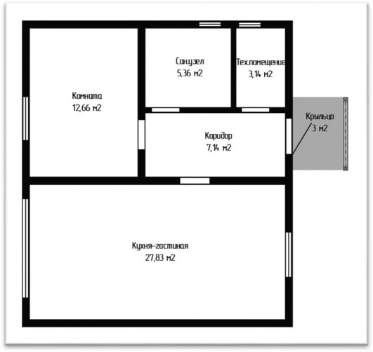 Уютный 66,7 м²- это современное одноэтажное строение, созданное с учетом потребностей небольшой семьи. Проект разработан с акцентом на функциональность и доступность.