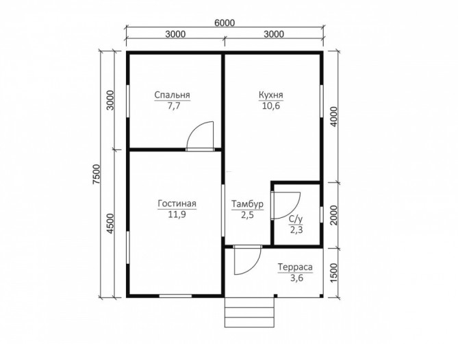 Проект дома из бруса 48 отличается удобной экспликацией помещений: удобная кухня, просторная светлая гостиная и комфортная спальня дома из бруса Во всех жилых комнатах проектом предусмотрены зимние двойные окна и деревянные двери. На входе в дом из бруса стоит надежная металлическая дверь.