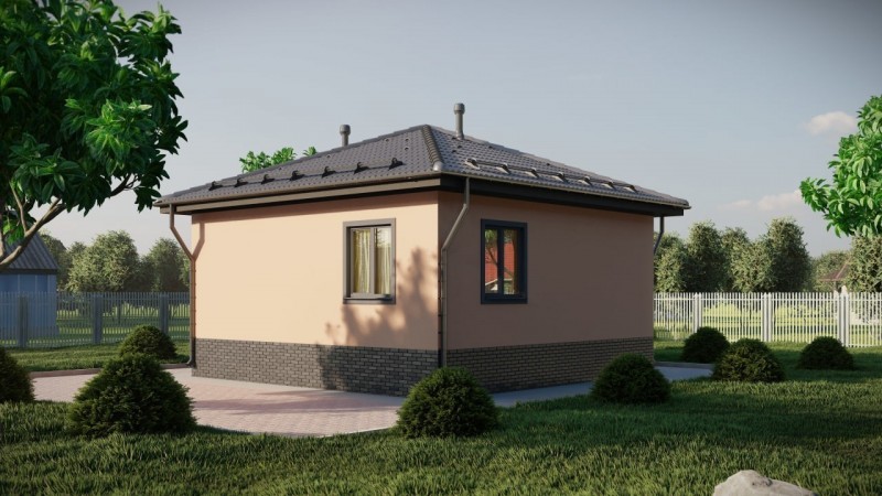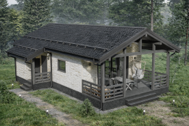 В проекте Милино дизайнерам удалось сделать очень гармоничный дизайн дома из СИП панелей. Шатровая крыша, аккуратное крыльцо с оградой, отделка под кирпич. Все это создает позитивное настроение и очень гармонирует с названием.