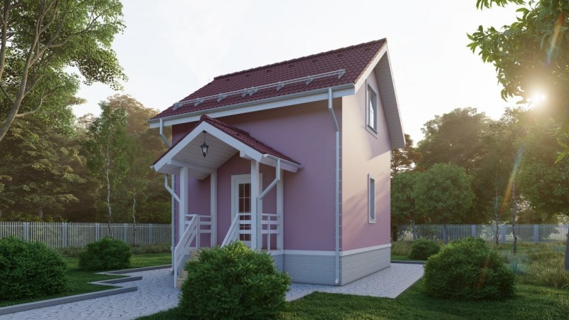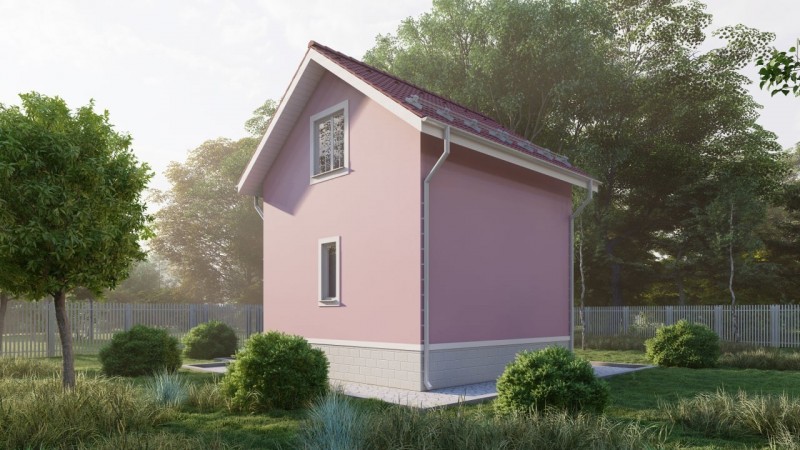 Дом из СИП панелей по проекту «Пион» вполне может стать идеальной дачей или гостевым домом. Первый этаж целиком отдается под своеобразную зону отдыха. С небольшого крыльца входящий в дом человек попадает в тамбур на 2,2 м2, затем кухня-гостиная 15,83 м2. В гостиной расположена лестница на второй этаж и дверь в большой санузел на 6,62 м2. Так же предусмотрено тех. помещение на 4,49 м2.