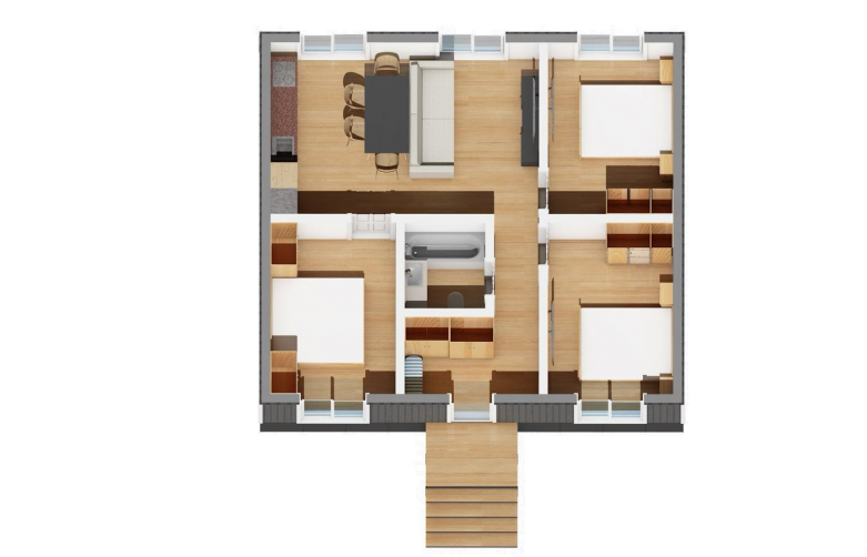 · Теплый пол повсюду: Равномерное и комфортное тепло по всему дому обеспечивают водяные теплые полы, встроенные в стяжку.