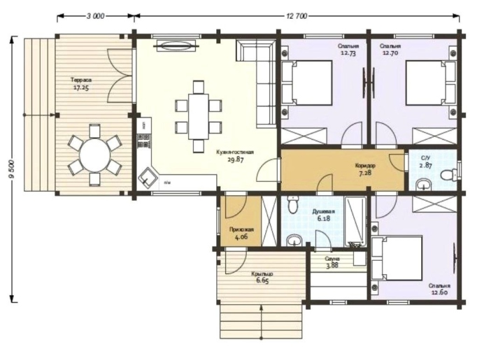 Дом по каркасной технологии: сваи 108мм - под домом, 89мм - под терассой. Каркас из сухой строганной доски, стыки утеплены, составые доски проклеены. Утеплитель "Лотэкс" из полиэфирного волокна (не имеет усадки, срок службы <50 лет). Пароизоляция 200мкм, стыки проклеены скотчем Delta. Ветрозащита Ondutiss Pro AM 150, внутрення отделка - гипсокартон. Кровля 0,5 мм. Окна: профиль - Veka, фурнитура - Maco. Дверь входная с тройным уплотнителем и терморазрывом. Теплый пол по всему контуру дома, полусухая стяжка 8мм, ламинат (3 цвета на выбор). Бойлер и электрический котёл. Водоподведение и разводка сантехники. Вся электрика и вентиляция для вашего удобства.