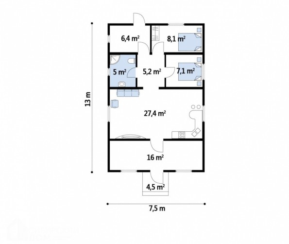 • Общая площадь 79 м2