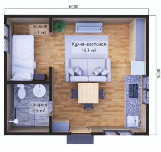 • Общая площадь 27 м2
