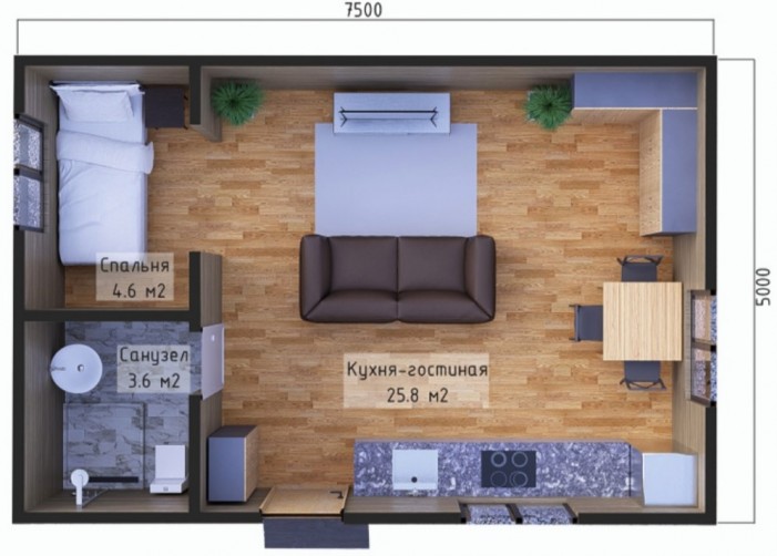 • Общая площадь 34 м2