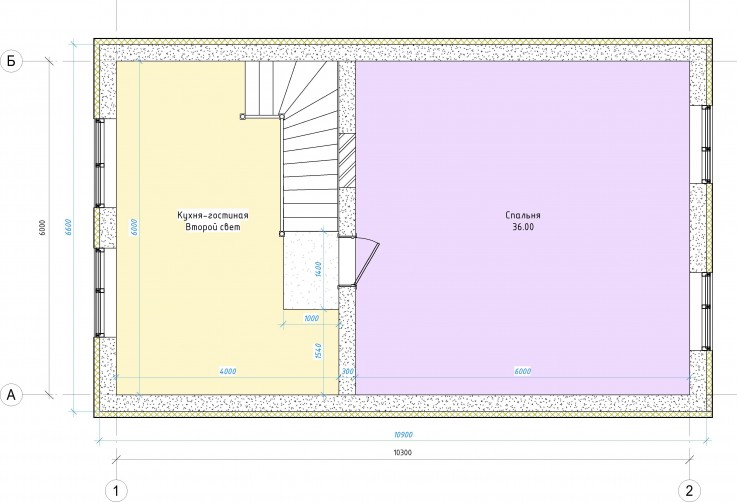 Объемо-планировочные решения дома вмещают просторную кухню-гостиную с большими панорамными окнами второй свет, мастер-спальню на первом этаже, санузел и прихожую. На втором этаже общее пространство с возможностью расположить две спальни и ванную.
