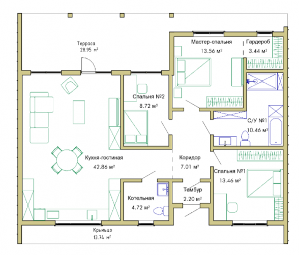 Общая площадь дома 160м2