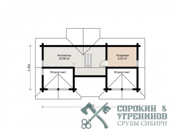 Индивидуальный дом рубленый из лафета кедра сечением 220х350мм, площадь дома 86м2. Размер сруба 5,3х11,6 метров. Два этажа, второй мансардный с вторым светом и балконом. Скромная планировка дома, небольшие две комнаты на первом этаже, гостиная, санузел, прихожая и веранда, и две маленькие комнаты на мансарде. Этот домик может быть отличным украшением любого участка и для любимых гостей.