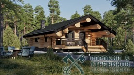 Сруб бани рубленый из бревна кедра диаметра 280мм площадью 76,3м2. Размер сруба 9,8х10,9 метров по осям. Баня с барбекю, есть терраса, прихожая и тамбур. Парная, мойка, комната отдыха и сунузел. Сруб рубленый вручную в русскую чашу (охлоп), брёвна окоренные гидро-окоркой (водой под высоким давлением), а так, же это можно сделать скобелем или лопатой, или строганное рубанком. Объем бревна в срубе 68м3. Баня установлена в Новосибирской области в 2014 году в поселке Ваганов Парк.
