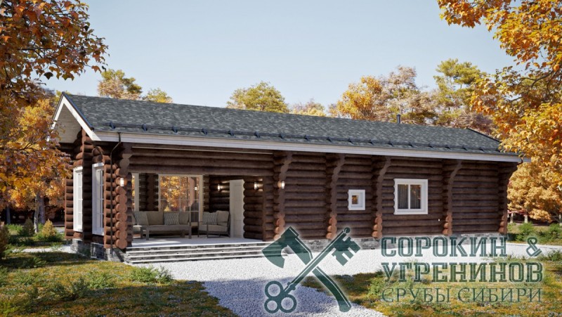 Сруб бани рубленый из бревна кедра диаметром 320мм площадью 86,9м2. Размер сруба 5,4х17,3 метров по осям. Баня с верандой. Парная, мойка, санузел, большая гостиная комната, есть тамбур, крыльцо и веранда. Сруб рубленый вручную (канадская рубка), брёвна окоренные гидро-окоркой (водой под высоким давлением), а так, же это можно сделать скобелем или лопатой, или строганное рубанком. Объем бревна в срубе 120м3. Баня установлена в Екатеринбурге в 2012 году.