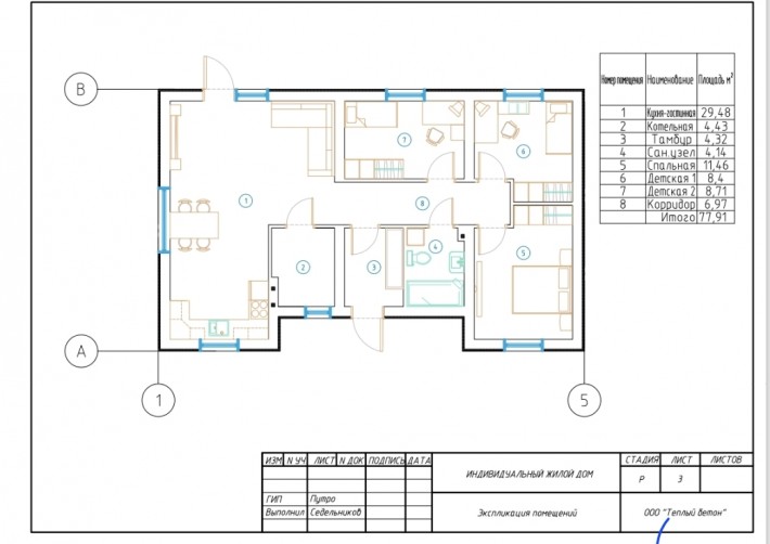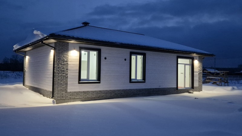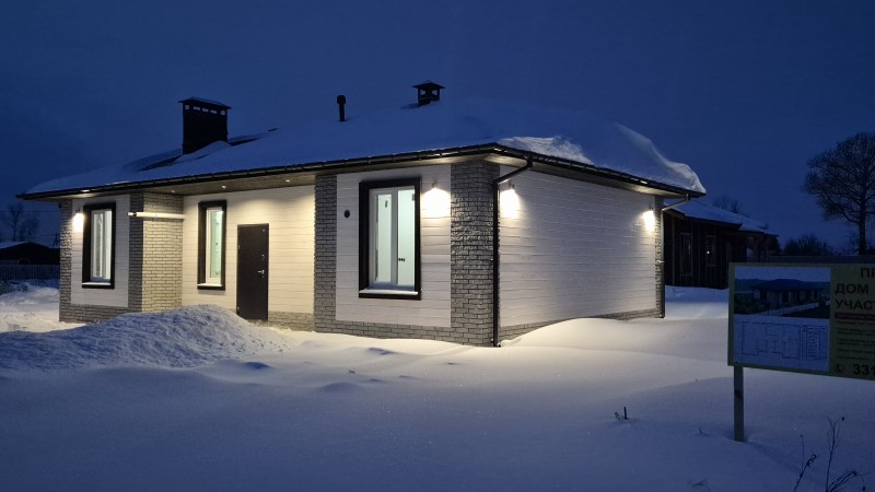 Один из самых востребованных проектов для семей из 3–4 человек – "Акварель-01-25". За счет большой гостиной, совмещенной с кухней, этот дом прекрасно подойдет не только для круглогодичного проживания, но и как дача, готовая принять своих постояльцев и летом, и зимой. Материал стен – полистиролбетон, особенность которого – сохранять приятную прохладу в жаркое лето и долго сохранять тепло в морозы.