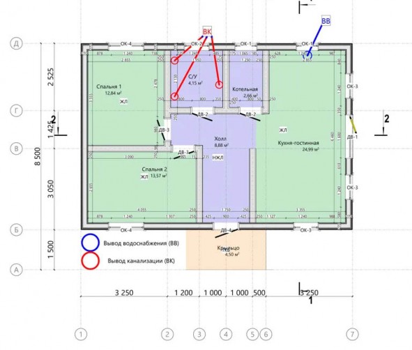 Цена указана с разводкой коммуникаций по дому. Фактическое подключение электричества и воды рассчитывается индивидуально. Внутри предчистовая отделка.