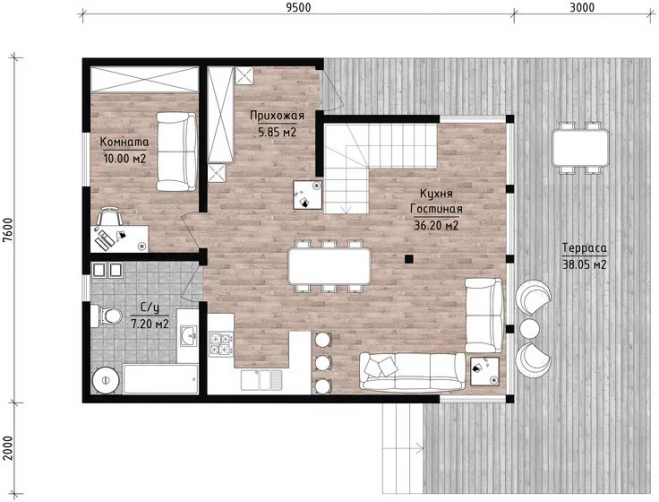 • Внешняя отделка: дерево
